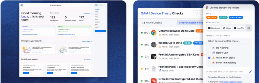 It monitors for weak, reused, or compromised passwords and warns you about potential breaches.