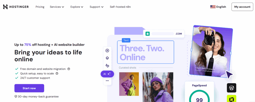 Hostinger offers fast and reliable hosting, perfect for personal websites or small business setups.