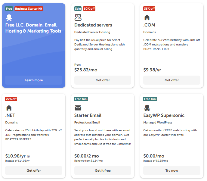 GoDaddy offers up to 50% off on its 1-year hosting plans, plus 1 free domain. This deal includes high-speed hosting, enhanced security, and excellent customer support. GoDaddy’s premium services are perfect for businesses that need to scale.