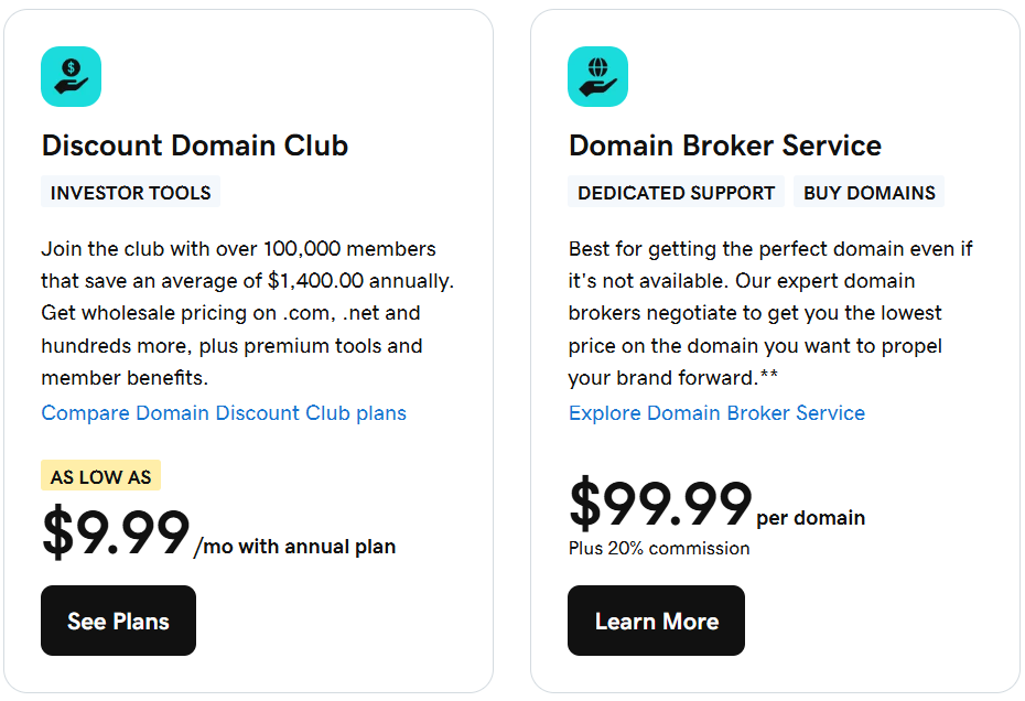 • Discount Domain Club: As low as $9.99/month with annual plan