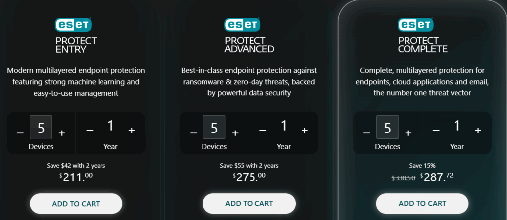 - PROTECT Entry β $211/year (5 devices) β Save $42 with 2-year plan.