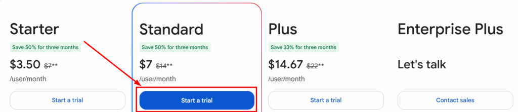 STEP 2: Choose your desired plan (Business Starter, Business Standard, etc.).