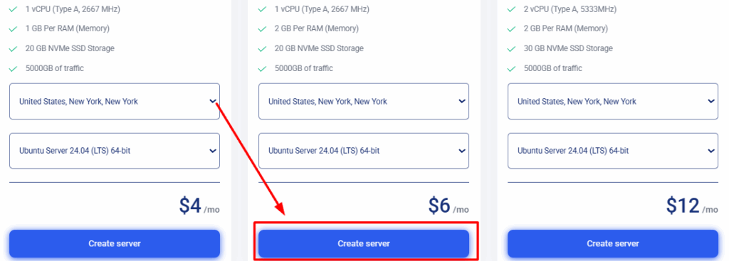 - (1 vCPU, 2GB RAM, 20GB SSD) – Only $6/month