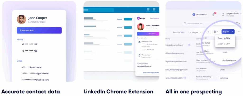 Kaspr’s lead generation and data automation tools can help you enhance your outreach efforts, so you can connect with more prospects and close deals faster.
