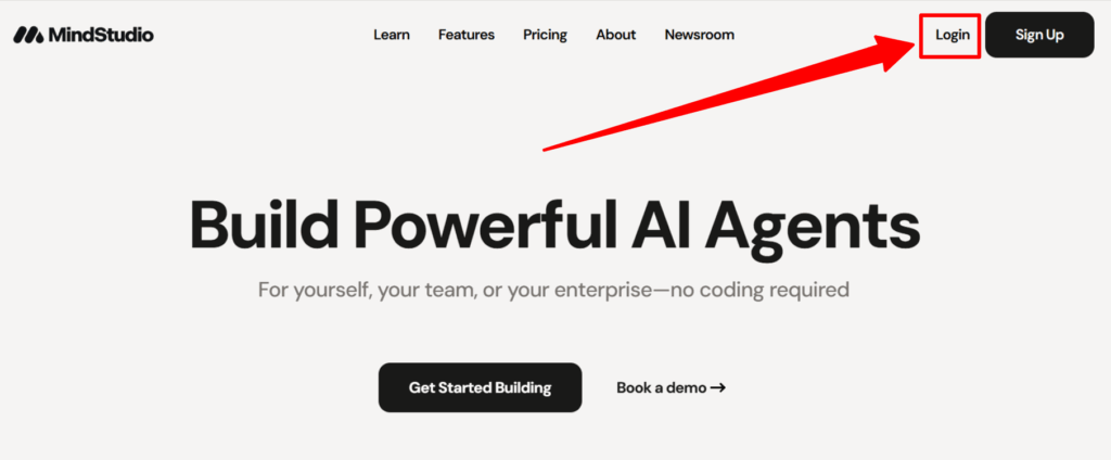 If you’re an existing user, log into your account. New to Mindstudio? Simply sign up to create an account.