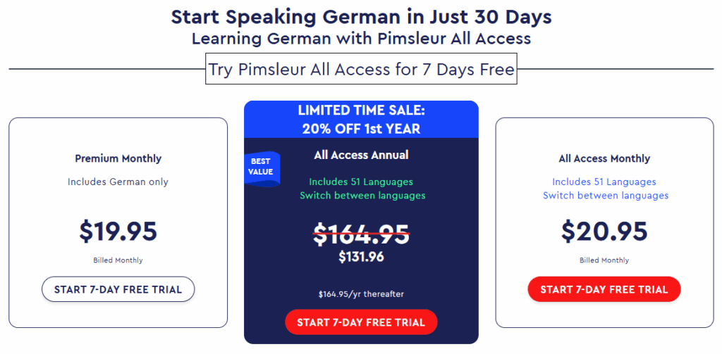 • Choose the right plan: Pimsleur offers plans for individual learners and families. If you want to learn just one language, the Premium Plan might be perfect. For multiple languages, the All Access Plan is a better fit.